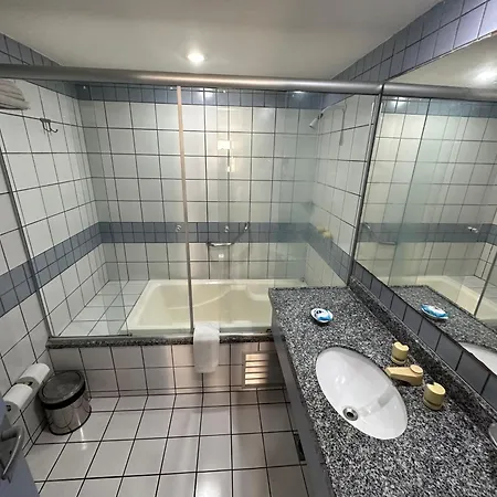 Os quartos do Iate Plaza - Flat 712 Particular de Fortaleza têm varanda, juntamente com controle de temperatura para sua conveniência. Banheira, banheiro separado e chuveiro, juntamente com lençóis de banho e toalhas, são fornecidos nos banheiros. Você pode desfrutar das vistas para a piscina.